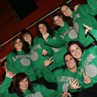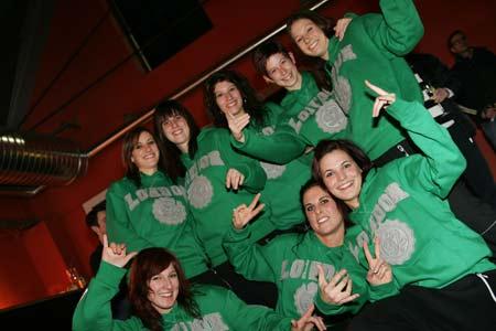 Gruppenbild von der Tanzgruppe Jam. Die Girls haben schwarze Hosen und grüne Sweatshirts an auf denen London steht. -