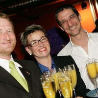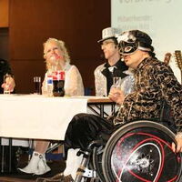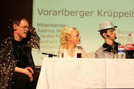 Von links nach rechts: Ebi, Prinzessin Multiplex Congenita und DJ Spasmo van Star beim Krüppelballkabarett. -