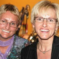 Auf dem Bild sieht man zwei Frauen - sie lächeln. -