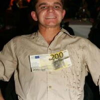 Geburtstagskind Vale mit einem großen 200 Euro Schein auf der Brust. -