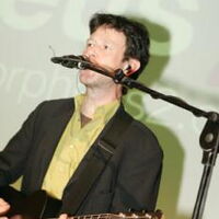 Ekkehard Breuss von Orpheus2 spielt auf der Gitarre und singt ins Mikrofon.