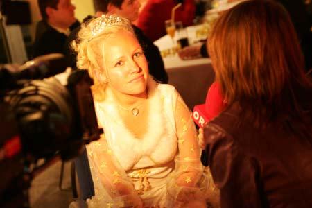 Obfrau von Reiz als süße Prinzessin mit Krönchen beim ORF-Interview. -