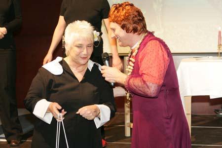 Margot, die bei der Amerikanischen Versteigerung den Hauptpreis ersteigert hat. Zwei Eintrittskarten mit noblem Dinner für zwei Personen im Casino Bregenz. -