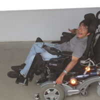 Süleyman Kurt in seinem neuen Rollstuhl bei der Rauchpause.