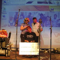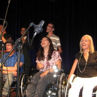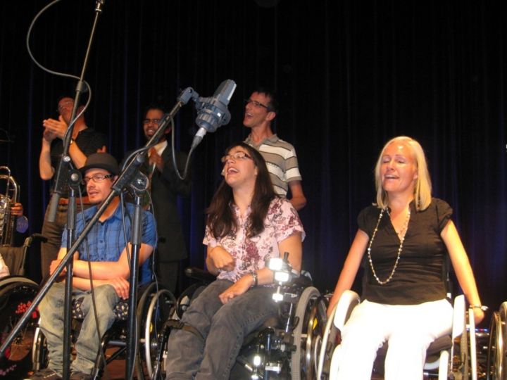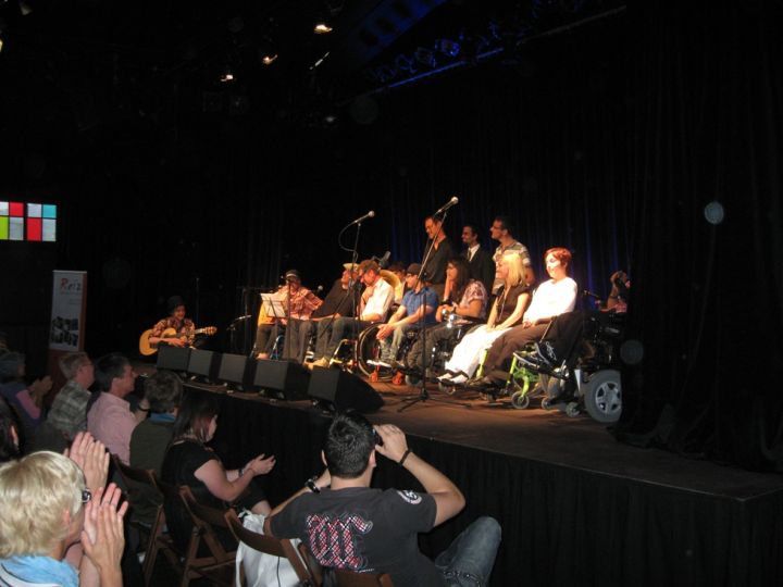 Claudia, Sülo, Heinz und Reinhard in "Die Scheckübergabe", das Krueppelkabarett. -
