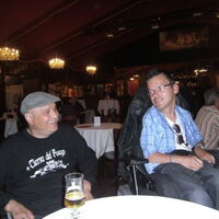 Diese zwei Herren machen im vollbesetzten Saal des Freudenhauses ein Schwätzchen. -
