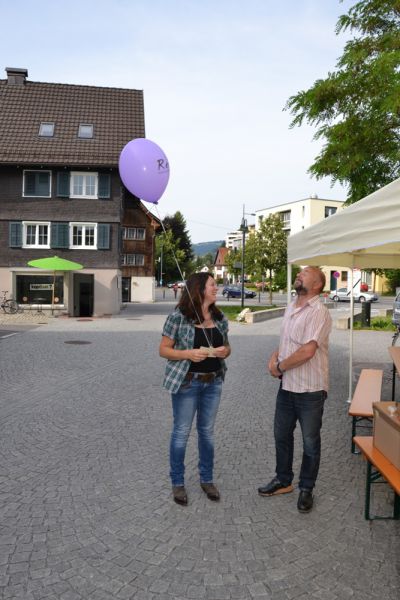 Die Dornbirner Stadträtin Marie Luise Hinterauer lacht mit Reiz-Obmann Andreas Guth fröhlich in die Kamera. -