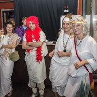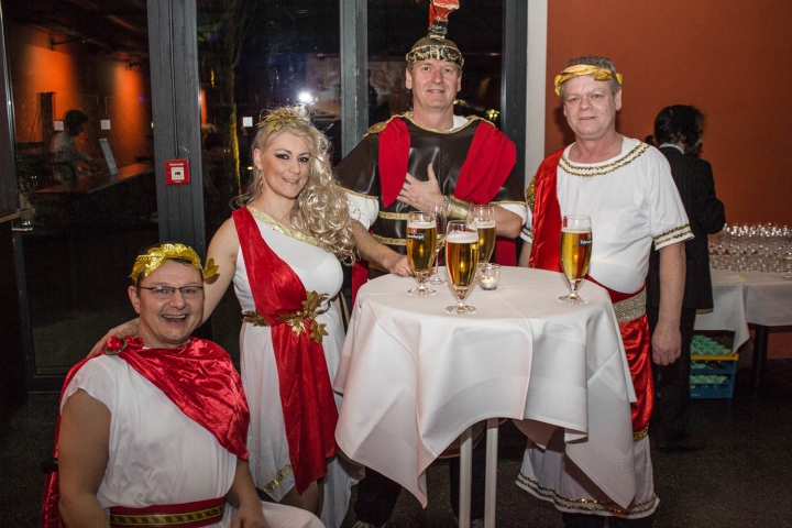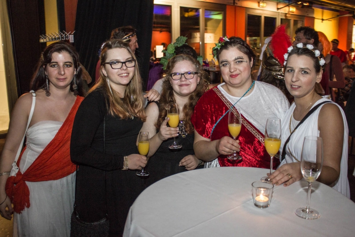 Vier Ballgäste im antiken Gewand. -