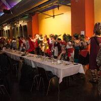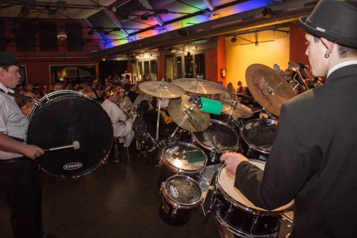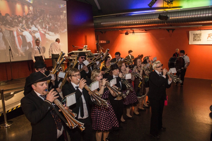Die Gäste beim Polonäse tanzen. Im Hintergrund die vollgefüllte Otten Gravour. -