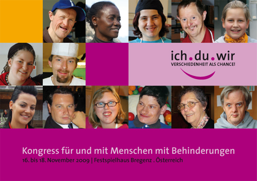 Die Vorarlberger Lebenshilfe lädt Menschen mit und ohne Behinderung ein miteinander zu feiern, sich auszutauschen, voneinander zu lernen, aufeinander zuzugehen. Verschiedenheit als Chance lautet das Motto beim Kongress für und mit Menschen mit Behinderung am 16.-18. November im Festspielhaus Bregenz.